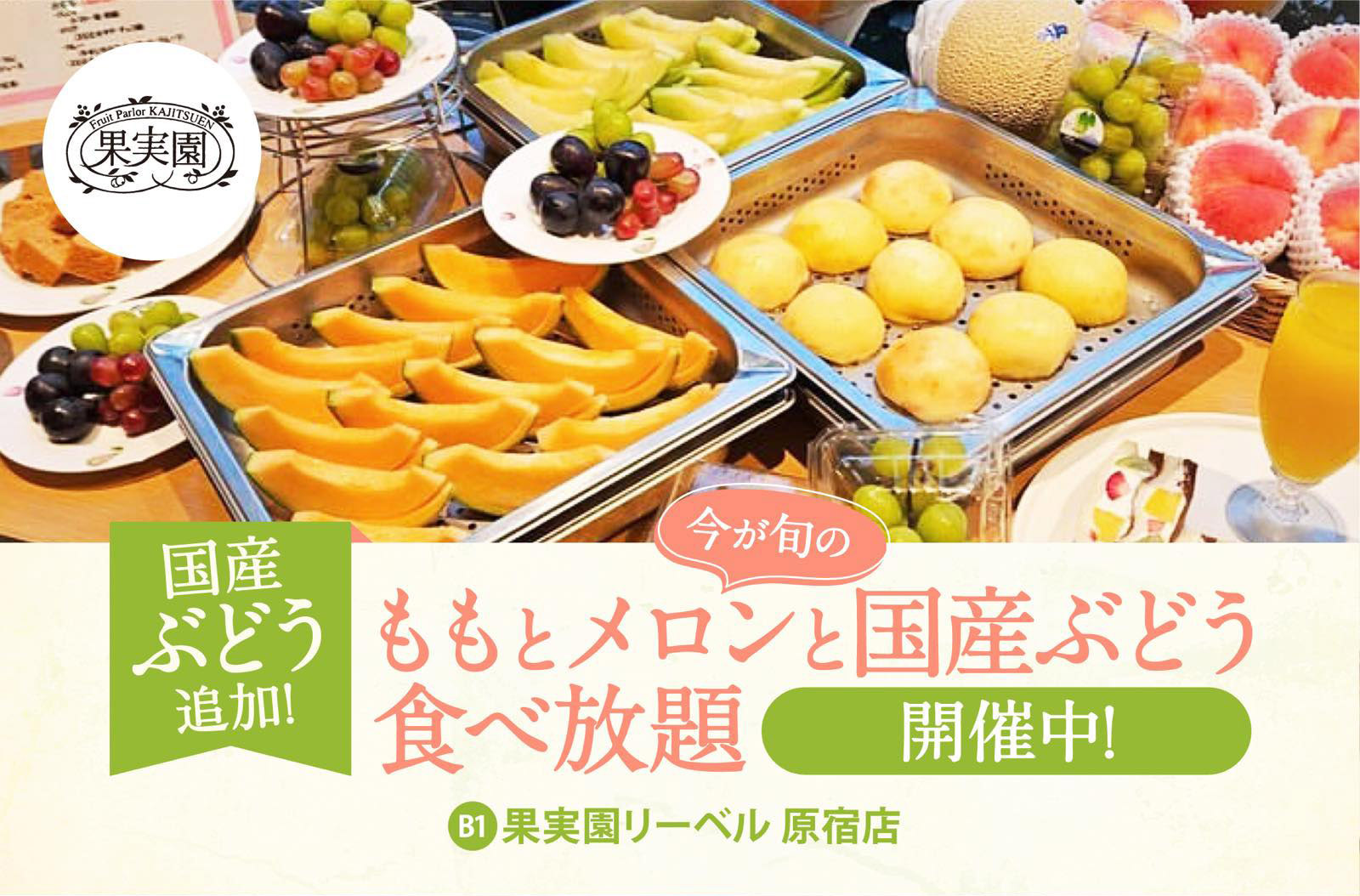 B1「果実園リーベル 原宿店」では、『ももとメロンと国産ぶどう食べ放題』を開催中!